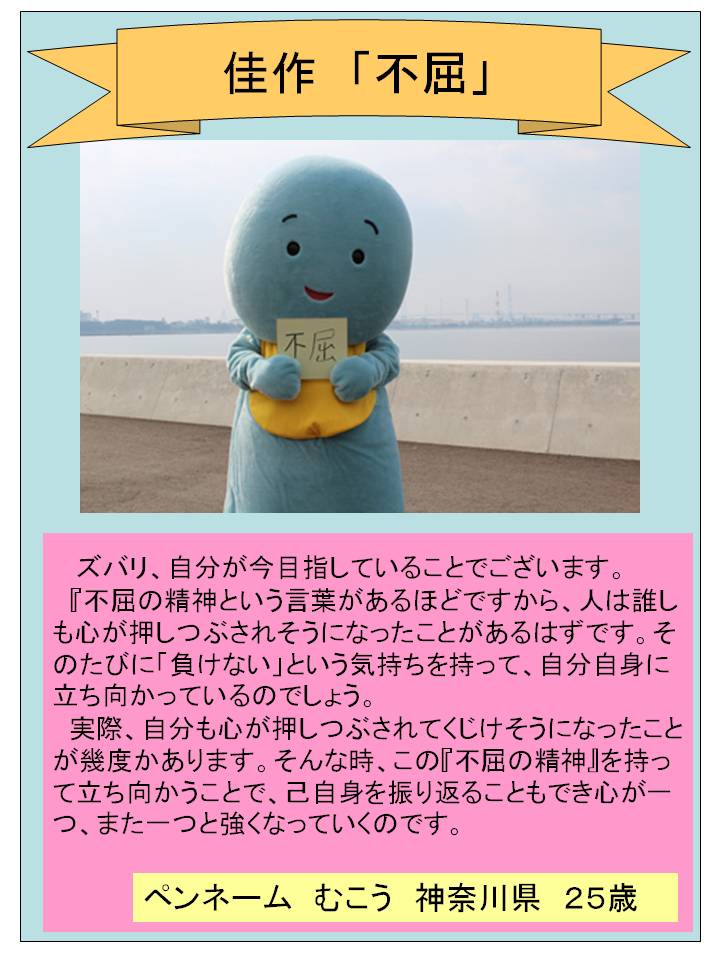 ”不屈の精神”を頭の片隅においておきたいと思いました。そして、自分に負けないように、が大切ですね。