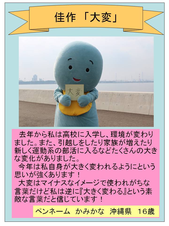 ・”大変”について、今までは「大変だ~、いやだな~」という感じで使っていました。かみかなさんの作品を読ん で、「すごい、なるほど!」とうなりました。今までで考えた事もなかったので、とても感心しました。