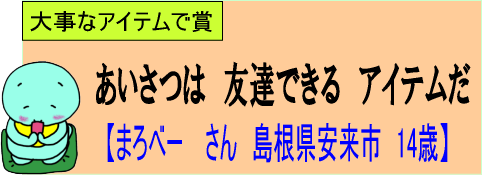 ・「アイテム」がいいですね。これからもあいさつを交わし合うことで友達を作っていってくださいね。