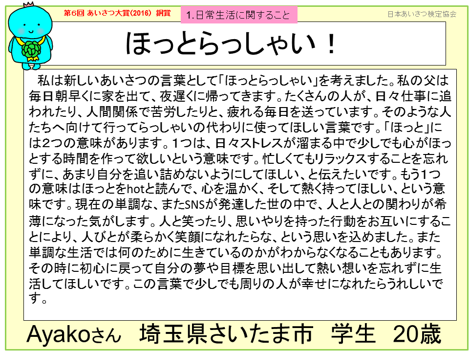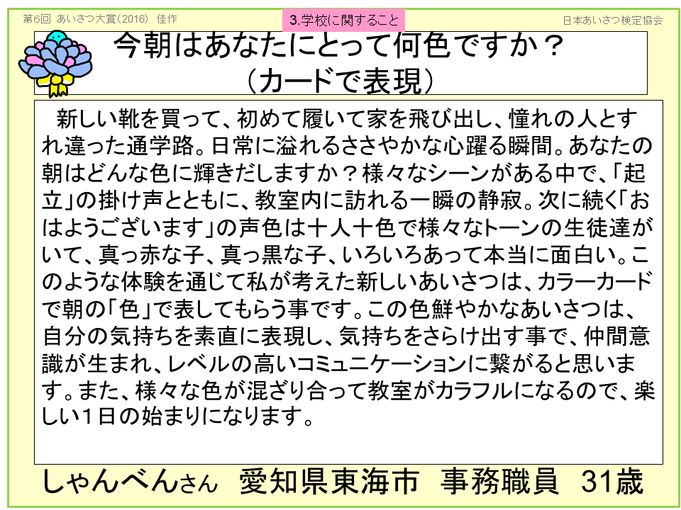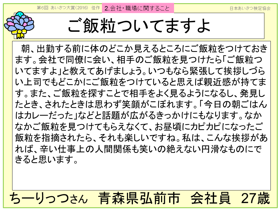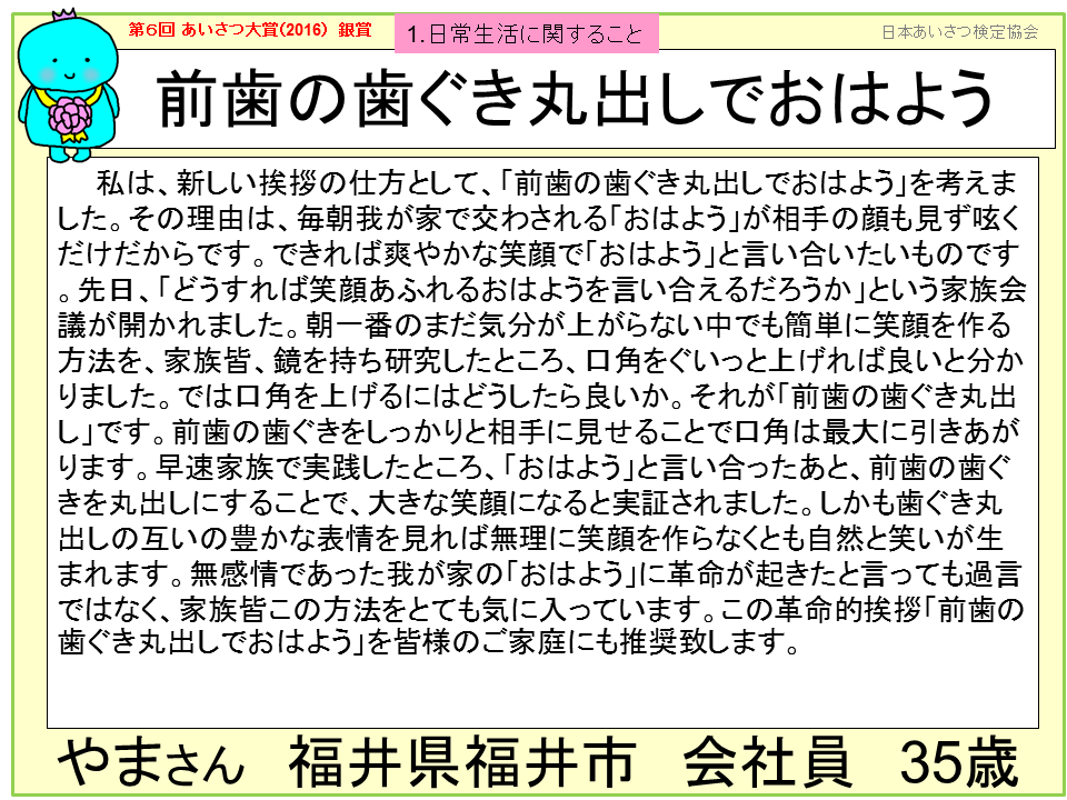 2016年 第6回 あいさつ大賞 受賞おめでとうございます!!